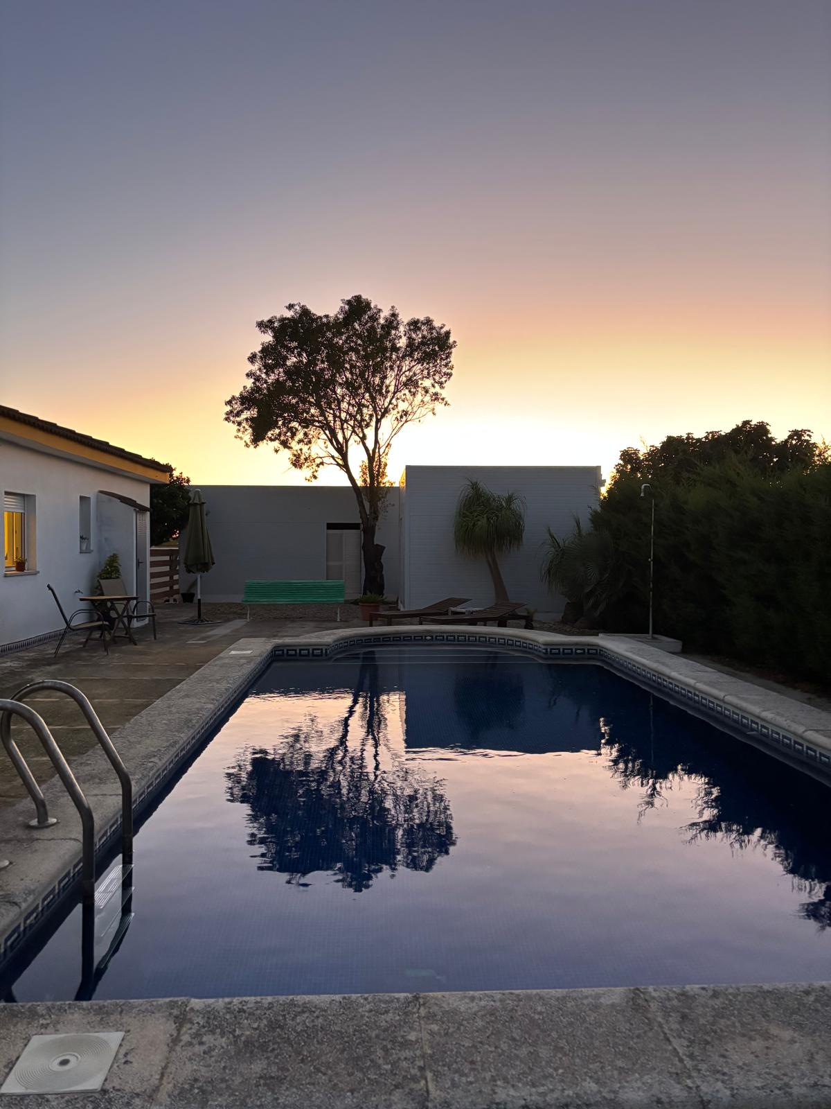Para los días más calurosos, podrás refrescarte en la amplia piscina de la propiedad o acercarte a la playa, situada a tan solo 5 km. La ubicación es perfecta para quienes buscan combinar descanso y cercanía al mar.